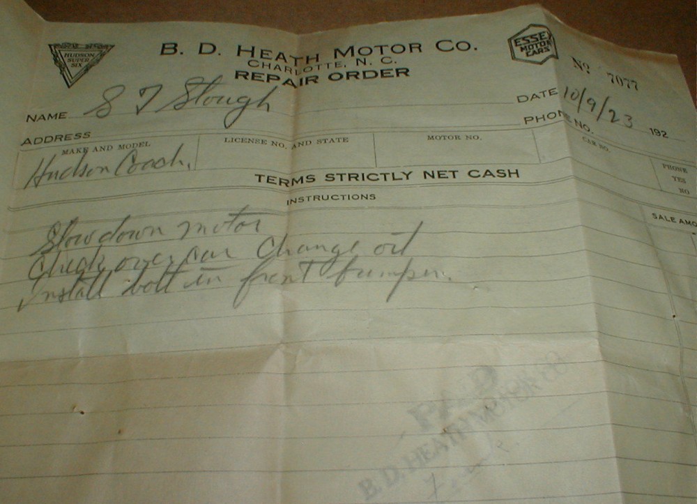 B.D. Heath Motor Co, 209-211 S. Church St. Dealer: Benjamin D. Heath Jr whose father had also been a NC businessman. In business 1922-1929.