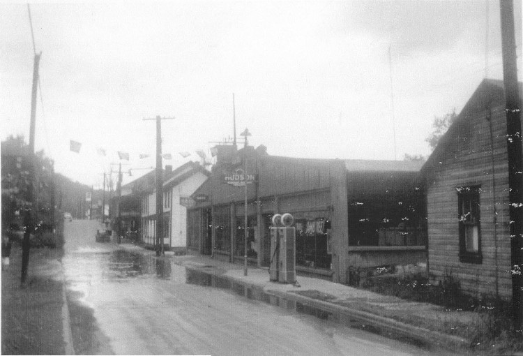 After his Honorable Seperation from the U.S. Army after his WWI overseas tour, Charles Aumiller built this garage at the East end of town. This snapshot was taken about 1920. It is hard to see, but the high sign says HUDSON-ESSEX. Also, notice the car to the right of the photo. Charles was easy going and extended too much credit, and was forced out of business in 1930, when Guy Narehood and Dave Rowe bought this business and named it the Super Service Garage.