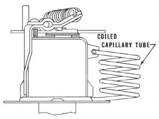 Beginning with car No. D-2292652, a change was made in the weather control water valve in that the capillary tube which heretofore was secured to the heater core is now coiled at the side of the water valve. Note illustration below.